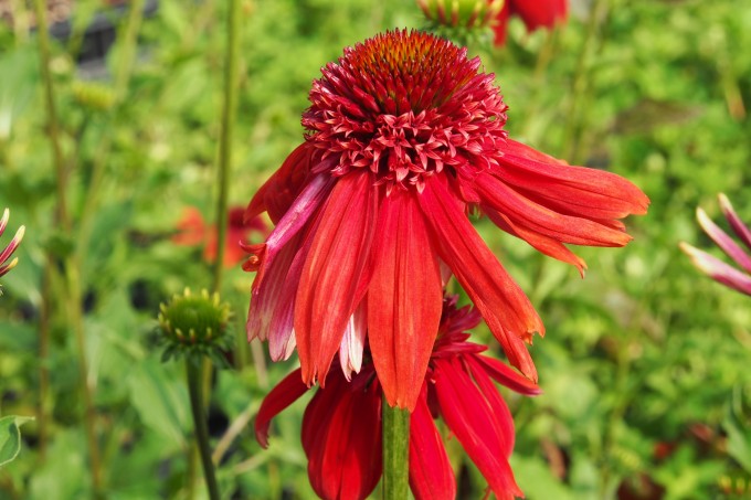 Echinacea purpurea 'Eccentric' è una Perenne che ama il terreno normale, fresco, come esposizione preferisce il sole, il fiore è rosso-bordeaux centro rosso violaceo ed appartiene alla famiglia delle Asteraceae, il suo periodo di fioritura è Luglio - Settembre, raggiunge un'altezza massima di 60 - 80, gli accostamenti preferiti sono con Aster, Coreopsis, Delphinium, Echinops, Eryngium, Graminacee, Helenium, Nepeta, Veronica. Per avere un buon risultato deve essere piantata con una densità di 5 piantine al m2.